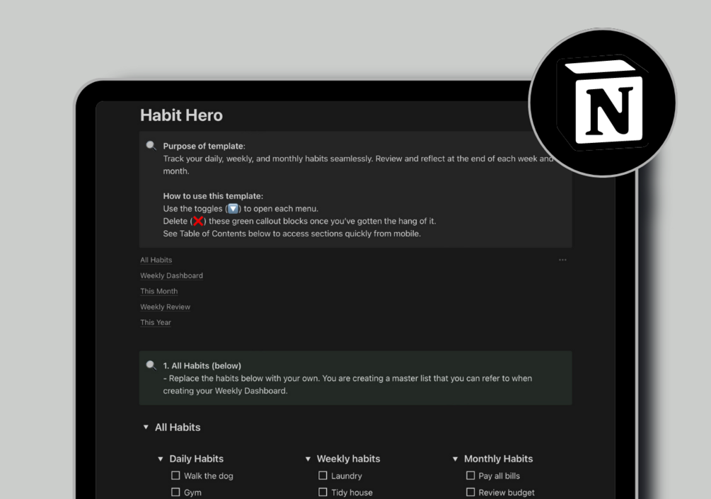Track your daily, weekly, and monthly habits seamlessly. Review and reflect at the end of each week and month.